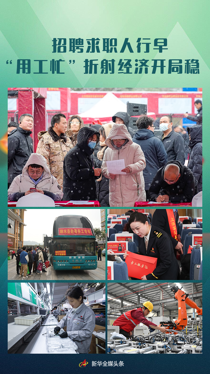“用工忙”折射開局穩,釋放出經濟運行回穩向好的信心。從跨省招工、專車專列接人返崗,到密集招聘、發布穩企拓崗新政策……各地搶抓勞動者流動及企業復工關鍵期,全力保用工、穩就業,努力跑好龍年穩經濟第一棒。