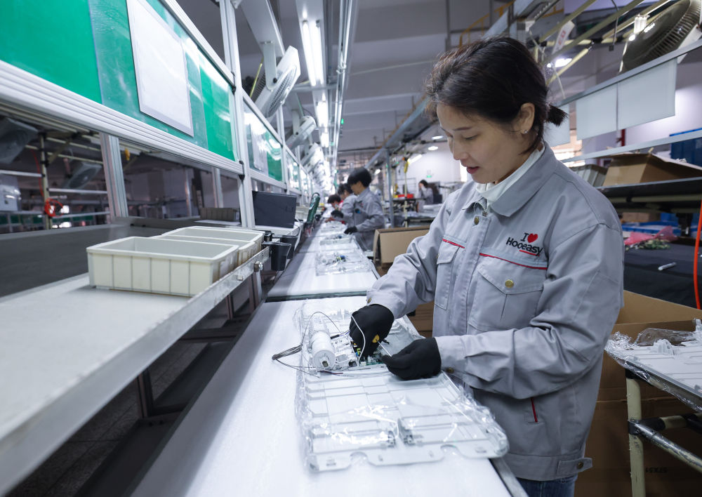 2月19日,工人在位于浙江金華市金義新區的浙江好易點科技股份有限公司車間內組裝智能晾衣機。據介紹,該公司已形成年產智能晾衣機100萬套生產能力。新華社記者 徐昱 攝