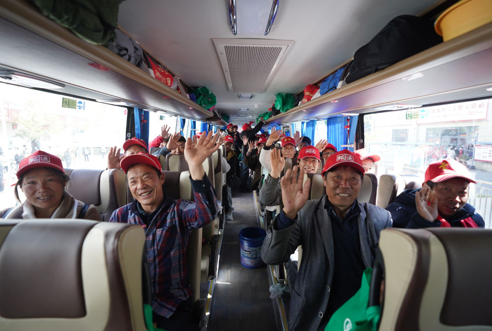 2月21日,在云南省昭通市的務工人員免費乘坐返崗直通大巴車前往福建、廣東、江蘇等地返崗就業。新華社發(梁志強攝)