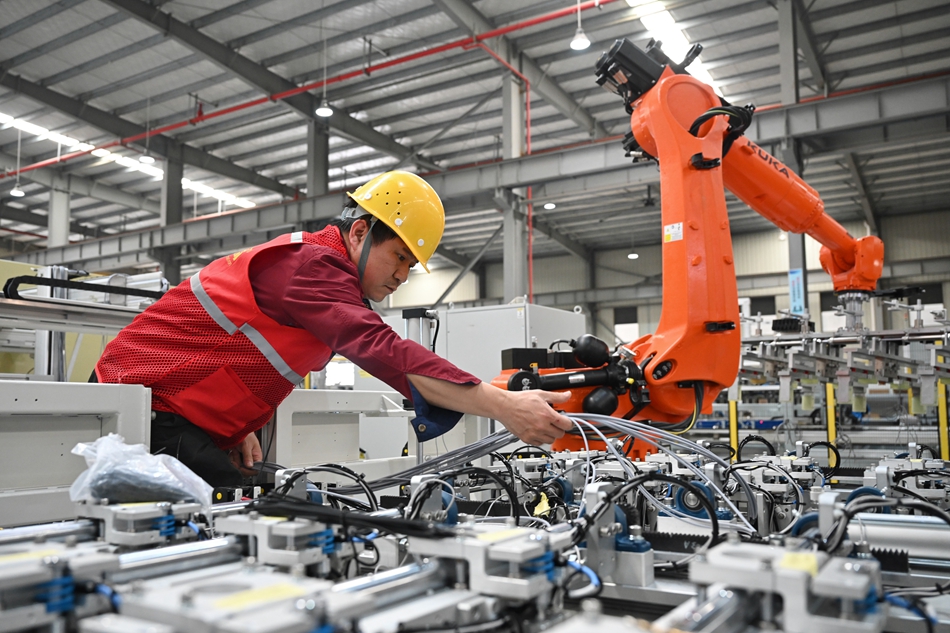 2月19日,寧德思客琦智能裝備有限公司工作人員在安裝調試機器人自動化設備。新華社記者 姜克紅 攝