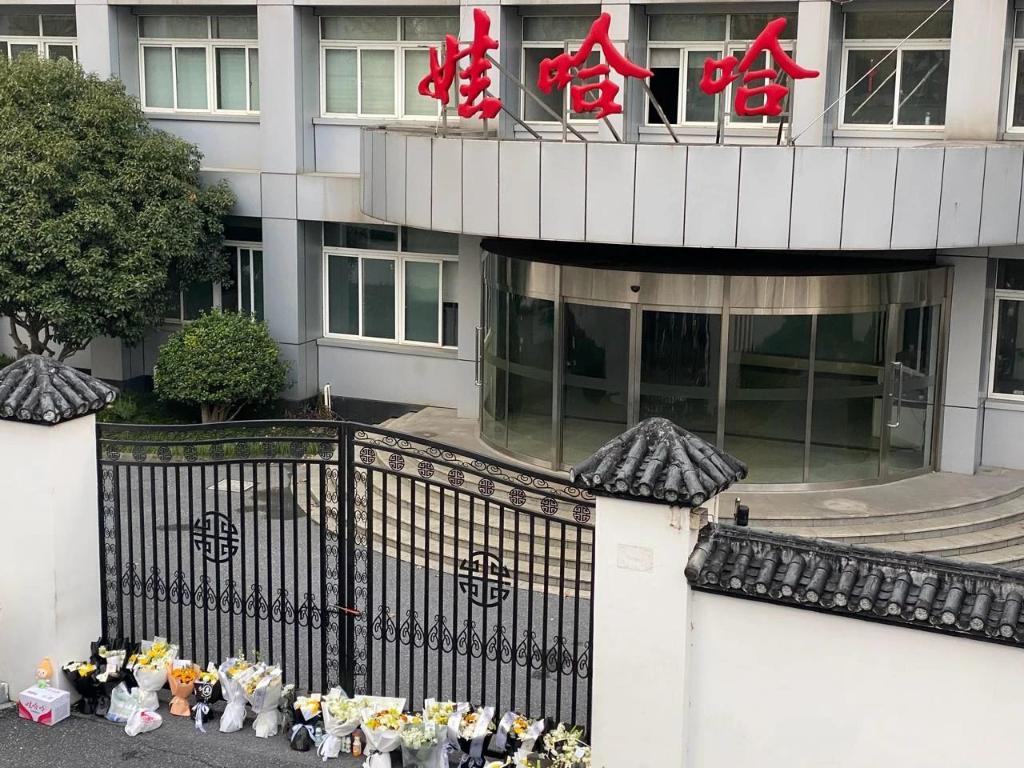 因2023年末,娃哈哈集團總部已經搬至新大樓,這里大門緊閉。但鐵門下,已整齊放滿一排市民自發送來的鮮花。時而,還有外賣小哥將AD鈣奶、娃哈哈純凈水等招牌產品送來,認真鞠躬后輕輕放在鮮花旁。