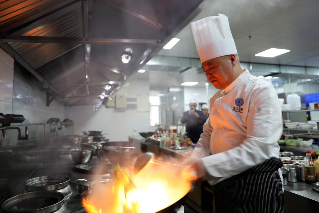 陜西烹飪大師、藍田籍廚師王濤在制作陜菜。新華社記者 張晨俊 攝