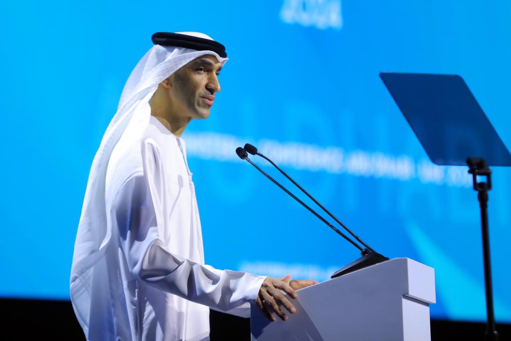 2月26日,在阿聯酋首都阿布扎比,阿聯酋外貿國務部長、世貿組織第13屆部長級會議主席薩尼·澤尤迪在世界貿易組織第13屆部長級會議開幕式上致辭。新華社發(世界貿易組織供圖)