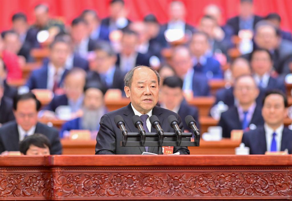 3月7日,全國政協十四屆二次會議在北京人民大會堂舉行第二次全體會議。這是寧吉喆委員作大會發言。新華社記者 翟健嵐 攝