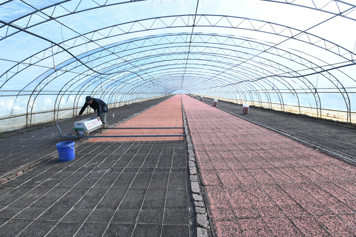 4月4日,在黑龍江北大荒農業股份有限公司友誼分公司一水稻育秧大棚里,農業職工在進行播種作業。 新華社記者 王松 攝