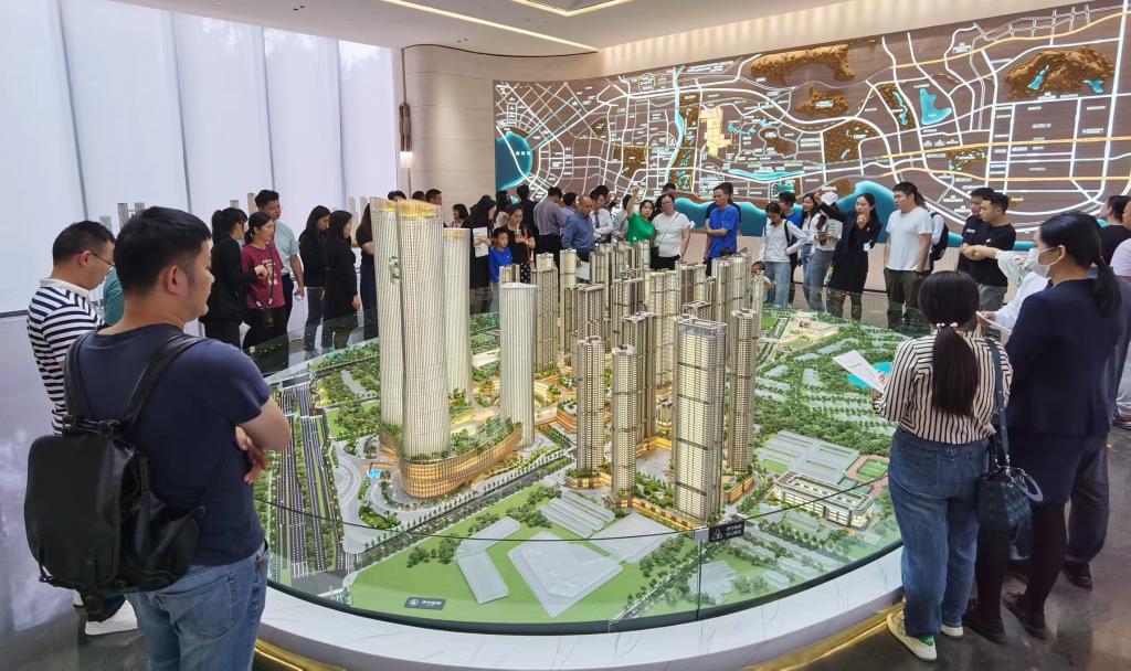 開展“以舊換新”活動的“綠景白石洲璟庭”項目吸引了不少購房者周末看盤。(受訪者供圖)