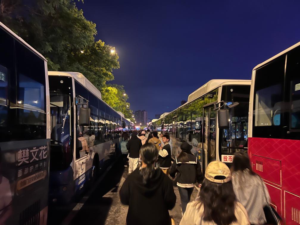 太原演唱會散場后,觀眾有序乘坐免費接駁車。新華社記者 馬曉潔 攝