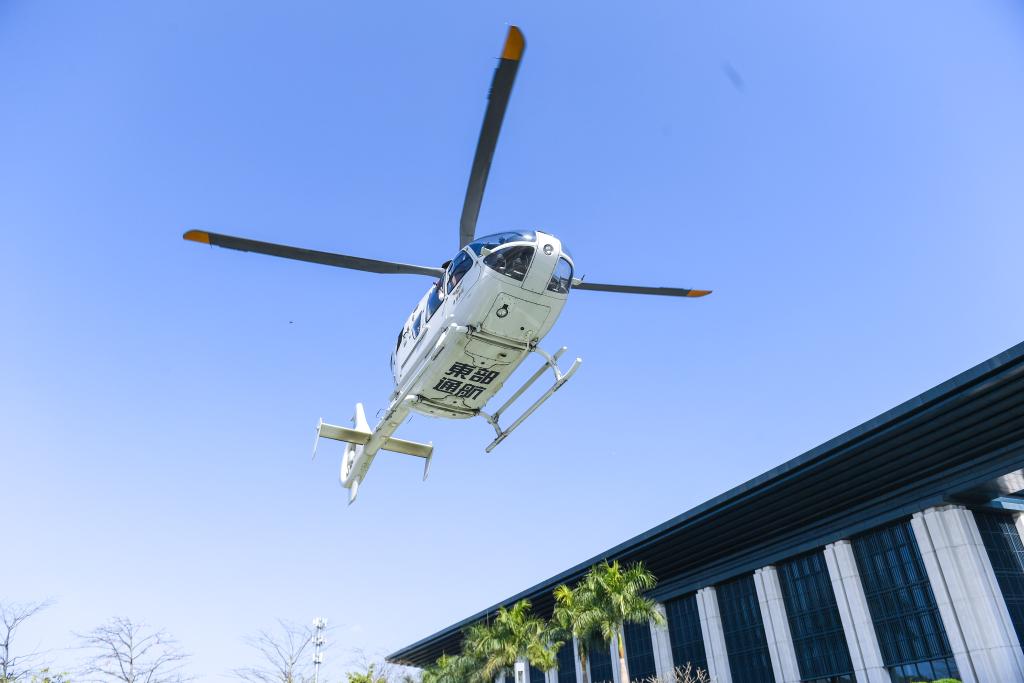 1月10日,在深圳坪山燕子湖會展中心,直升機起飛前往福田CBD。新華社記者 毛思倩 攝