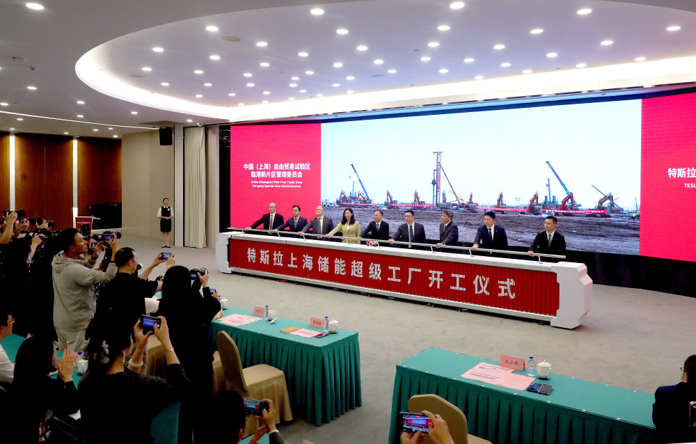 2024年5月23日拍攝的特斯拉上海儲能超級工廠開工儀式現場。新華社記者 方喆 攝