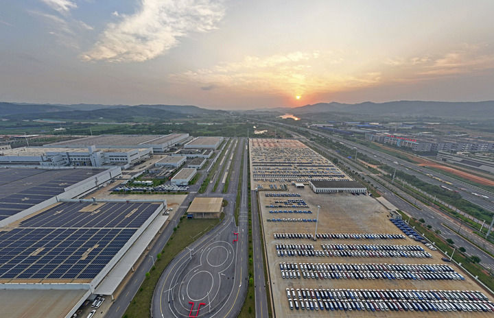 廣西南寧市伶俐工業園區新能源汽車生產基地(2024年5月14日攝,無人機照片)。新華社記者 周華 攝