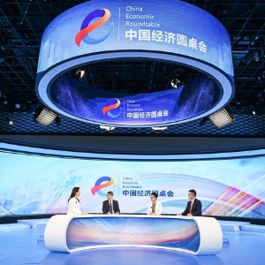 這是“中國經濟圓桌會”大型全媒體訪談節目錄制現場。新華社記者 陳曄華 攝