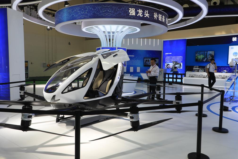 7月6日,在第三十屆蘭洽會主展館,參會者參觀電動載人自動駕駛飛行器。新華社記者張智敏 攝