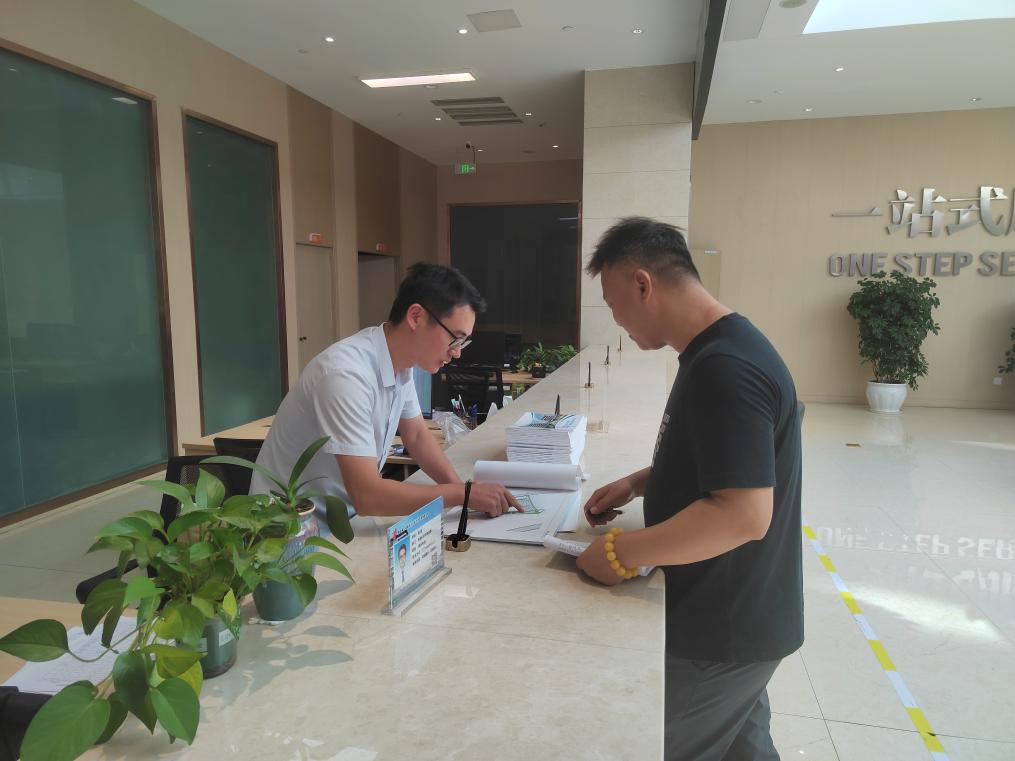 重慶綦江高新區一站式服務中心內,工作人員正在為企業人員辦理審批事項。(劉俊 攝)