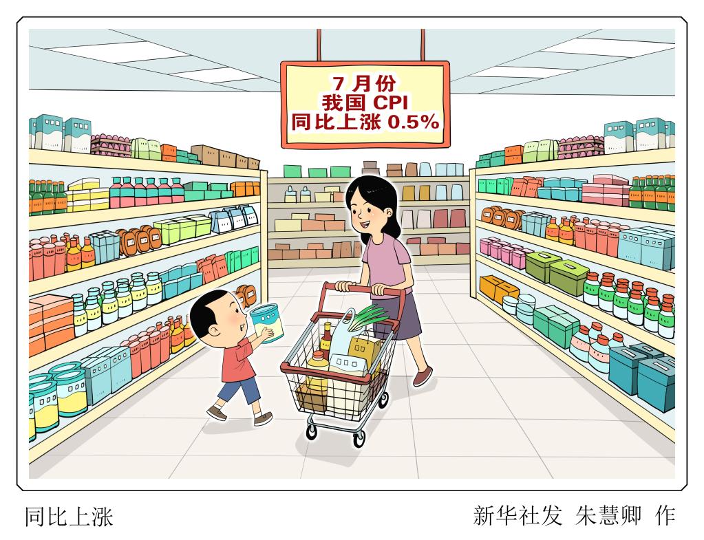 國家統計局9日發布的數據顯示,7月份,全國居民消費價格指數(CPI)同比上漲0.5%,漲幅比上月擴大0.3個百分點;環比由上月下降0.2%轉為上漲0.5%,漲幅處于近年同期較高水平,國內市場消費需求持續恢復。