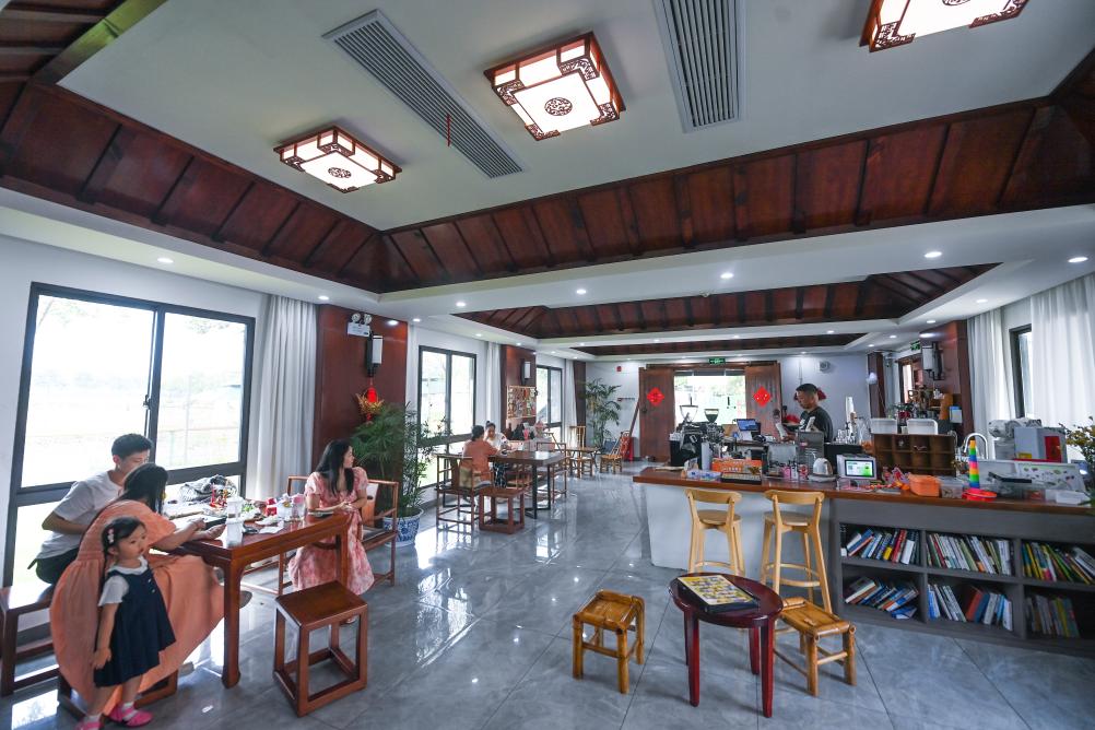 游客在浙江省嘉興市南湖區鳳橋鎮聯豐村的咖啡館里休息(2023年6月14日攝)。 新華社記者 徐昱 攝