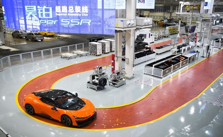 在廣州番禺廣汽埃安智能生態工廠拍攝的昊鉑超跑總裝線(2024年4月24日攝)。新華社記者 鄧華 攝