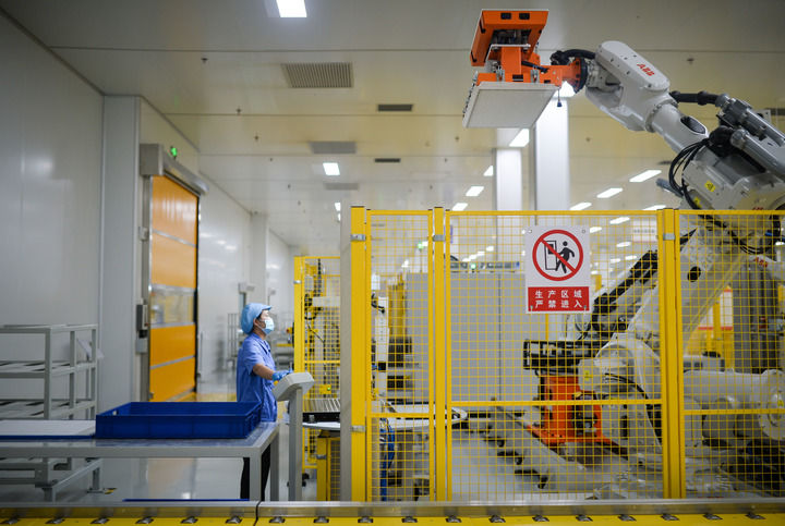 2024年5月19日,工人在位于廣東珠海的緯景儲能珠?!俺珿工廠”工作。該項目是先進液流儲能電池及系統的智能制造中心。新華社記者 李任滋 攝