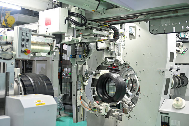 這是2024年7月26日拍攝的浙江杭州中策錢塘實業有限公司輪胎數字工廠車間內的自動化輪胎生產線。新華社記者 江漢 攝
