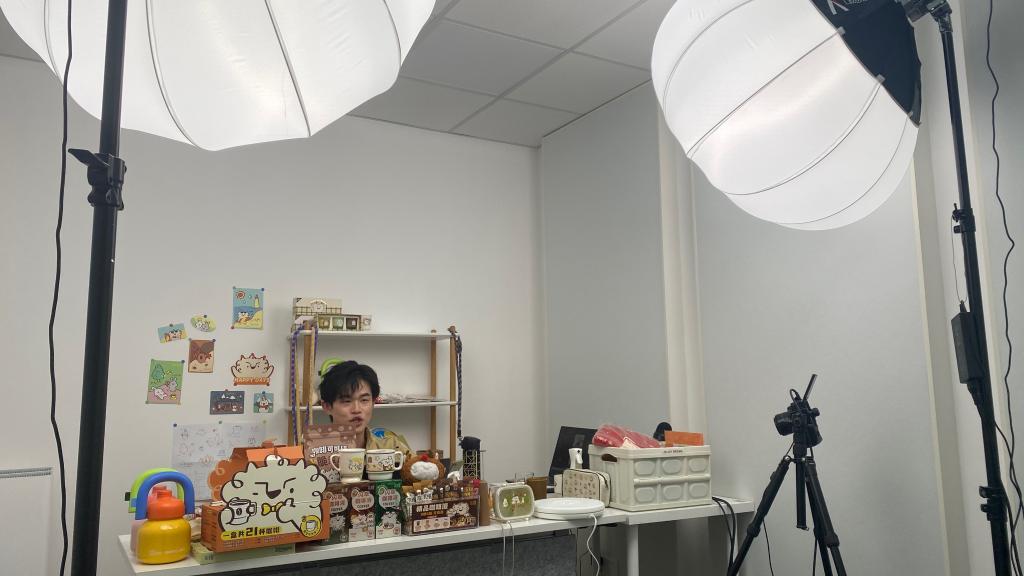 2024年2月26日,位于上海西岸的永璞咖啡直播間,一名咖啡銷售主播正在直播銷售咖啡冷萃液。新華社記者許曉青 攝