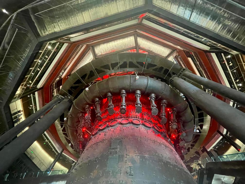 更絕妙的是,四高爐巨大的爐芯得以保留。伴著紅色燈光照映,爐火仿佛再次升騰而起。年輕人感覺到“賽博朋克”,年長者聯想到“鐵色記憶”,專業人士看到了“城市更新”。這是高爐生命的最好延續。