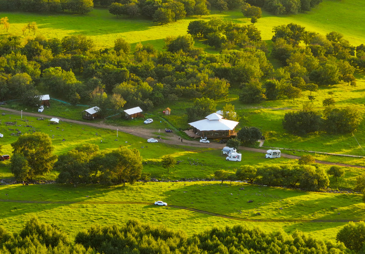 這是內蒙古興安盟烏蘭毛都草原深處的一家民宿(無人機照片)。新華社記者 連振 攝