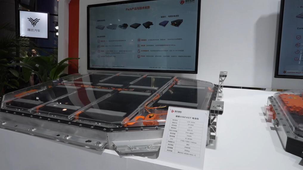在東博會新能源及智能網聯汽車展區,國軒高科股份有限公司正在展示應用于越南VINFAST品牌新能源汽車的電池包。
