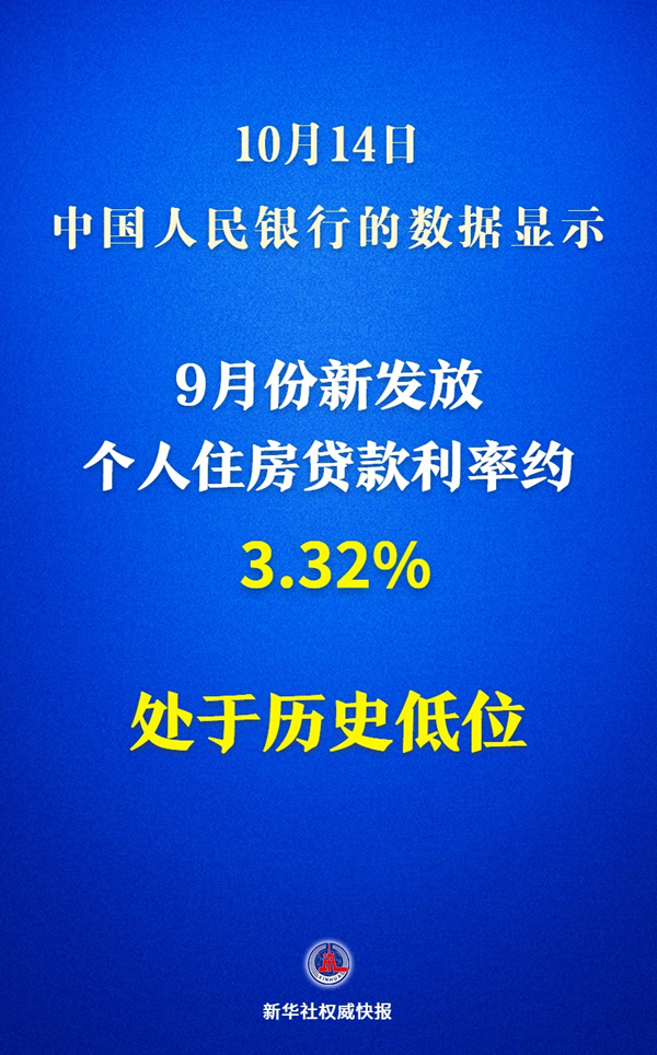 9月份新發放個人住房貸款利率約為3.32%