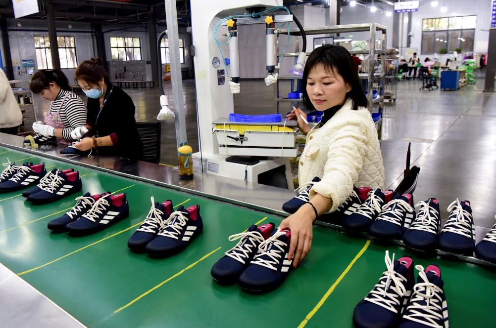 2024年10月23日,河南省上蔡縣一家制鞋企業,員工正在生產線工作。新華社記者 朱祥 攝