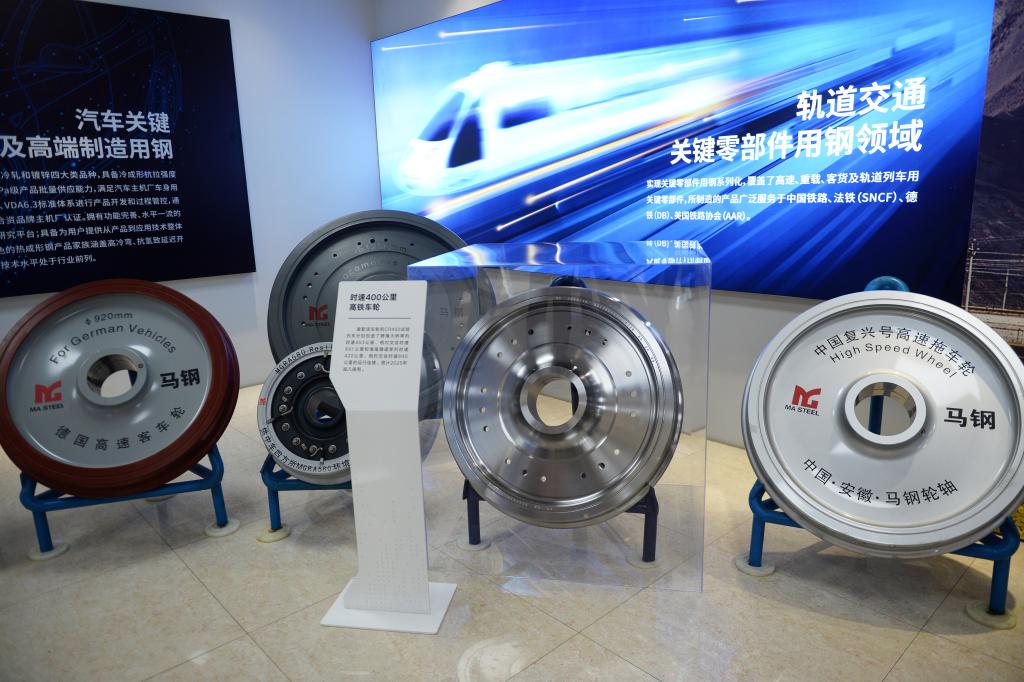 這是在寶武集團馬鋼展廳拍攝的車輪展品。新華社記者 劉勇貞 攝