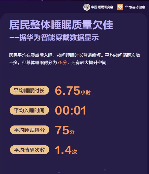 據中國睡眠研究會和華為運動健康共同推出的《2024中國居民睡眠健康白皮書》顯示,目前我國居民整體睡眠質量欠佳,普遍存在睡不著、睡不夠、睡不深等問題。