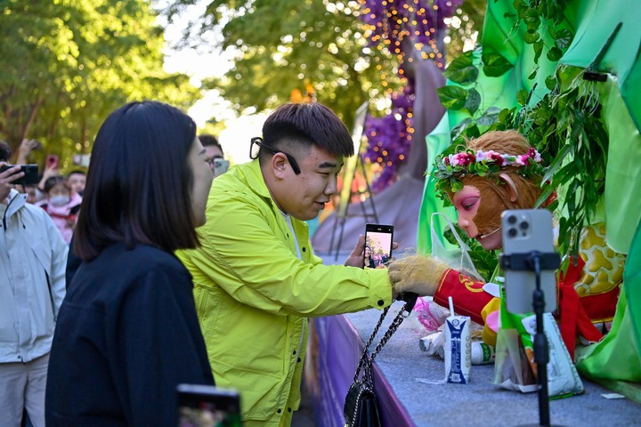長安十二時辰街區把影視劇IP進行場景還原,轉化為沉浸式唐風市井街區的文旅項目。長春市動植物園在獲得86版《西游記》授權后,啟動西游主題的沉浸式夜游活動,“雪餅猴”模仿的就是孫悟空被壓在五行山下的場景。