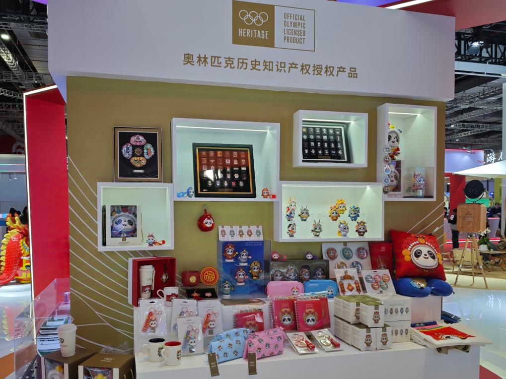 中國旅游集團展臺展示的“冰墩墩”系列產品。新華社記者 徐壯 攝