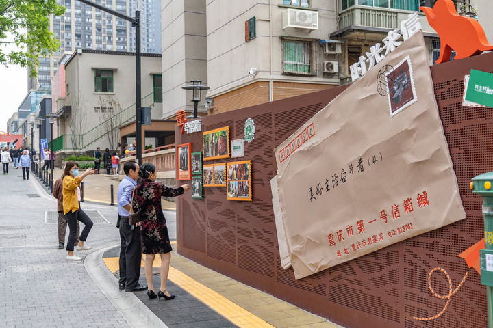 重慶市九龍坡區謝家灣街道民主村片區城市更新項目(一期)正式竣工亮相,市民游客前來打卡(2023年4月28日攝)。新華社記者 黃偉 攝
