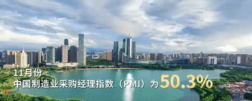 11月份,中國制造業采購經理指數(PMI)為50.3%,連續2個月在擴張區間運行。