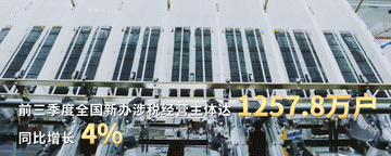 前三季度全國新辦涉稅經營主體達1257.8萬戶,同比增長4%,反映出我國經營主體活力和發展信心持續提升。