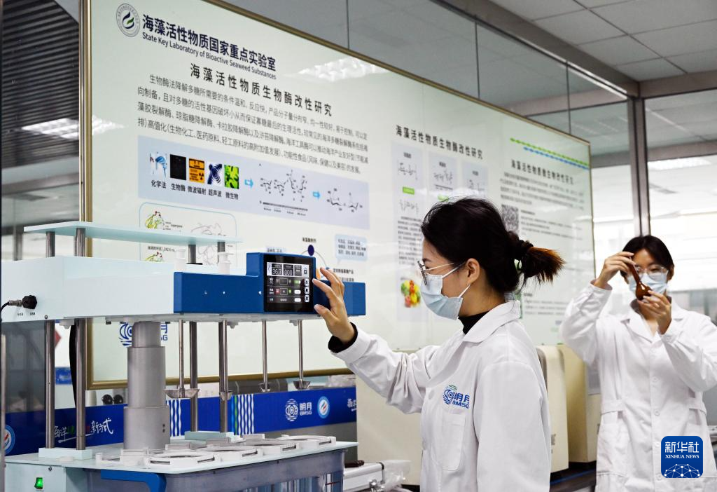 明月海藻集團研發中心研究人員在實驗室內工作(11月14日攝)。新華社記者 李紫恒 攝