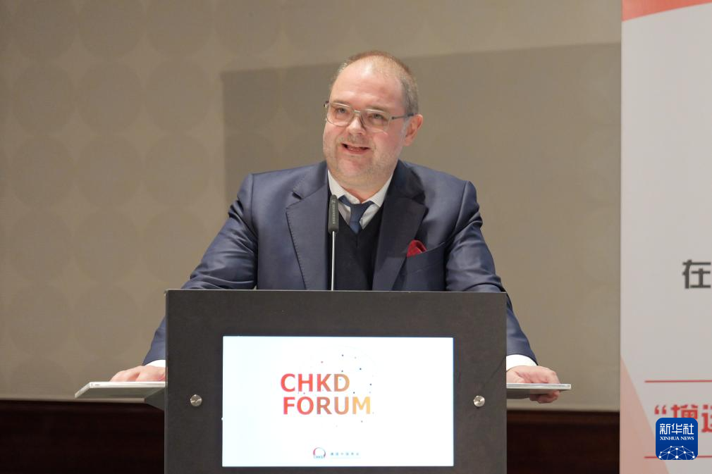 12月5日,德國聯邦勞動及社會事務部國際勞動及社會政策司司長卡斯頓·施滕德爾在柏林舉行的德國中國商會2024年度論壇上發表講話。新華社記者 邰思聰 攝