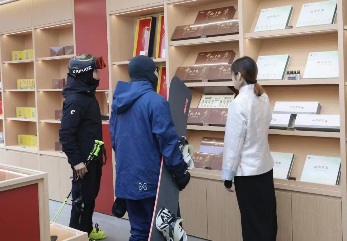 游客在位于吉旅萬峰通化滑雪度假區內的人參旗艦店購買商品。受訪者供圖