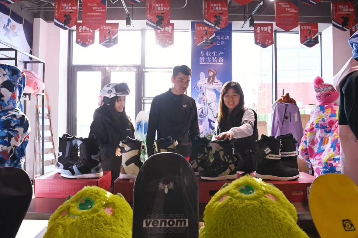 滑雪愛好者在某直銷店咨詢選購滑雪裝備。受訪者供圖