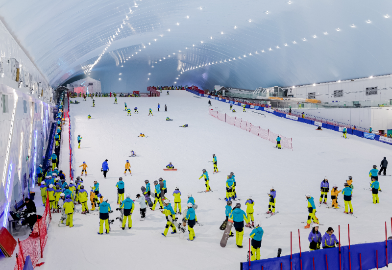 例如,廣州熱雪奇跡就采用超大型制冷設備對超過5萬平方米的冷區進行全天候制冷控溫,確保四季零下6℃的適雪溫度?!拔覀兠磕暌淮稳鎿Q雪,換雪量近20000立方米,每月通過造雪機器制造新雪,并在每日凌晨補雪壓雪,保障新鮮雪地迎接滑雪愛好者?!睆V州熱雪奇跡總經理孫錚表示。