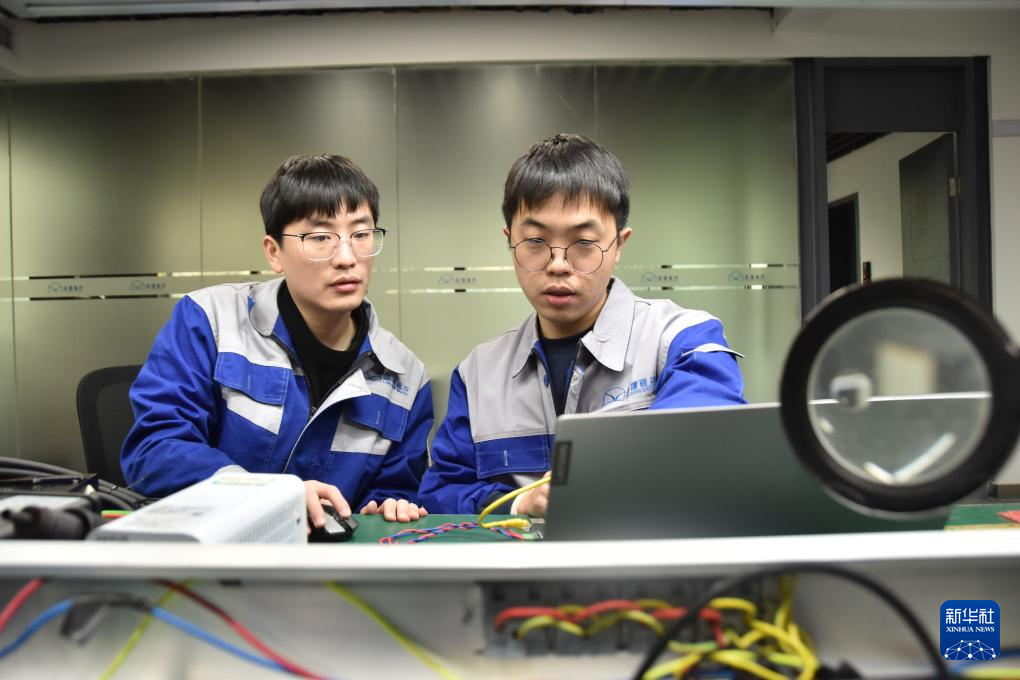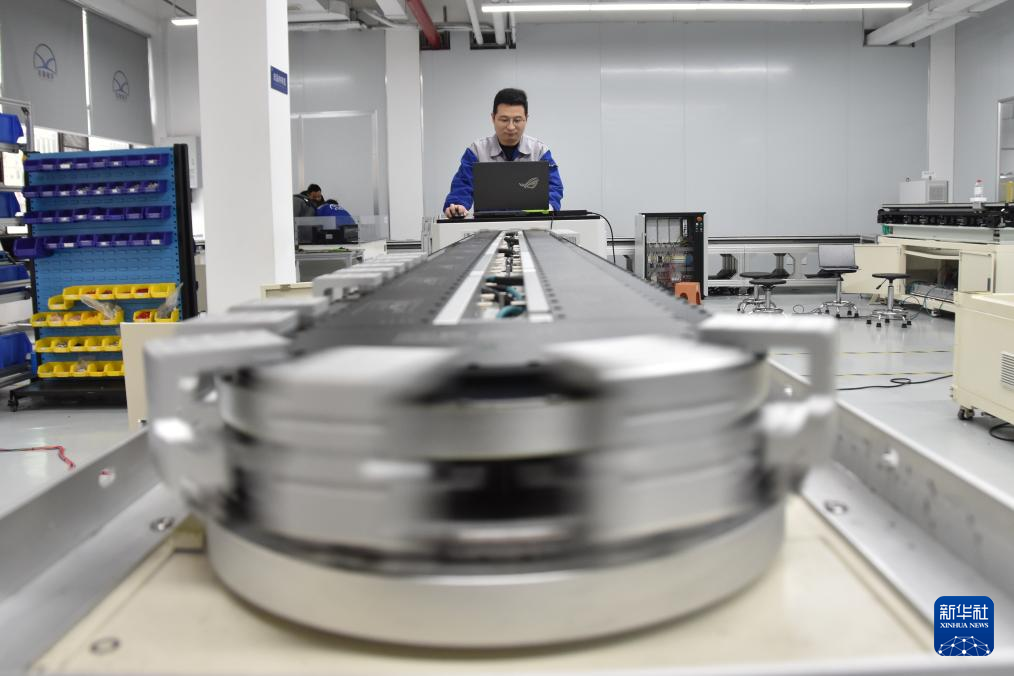 湖南凌翔磁浮科技有限公司研發人員在測試新產品(12月19日攝)。新華社記者 白田田 攝