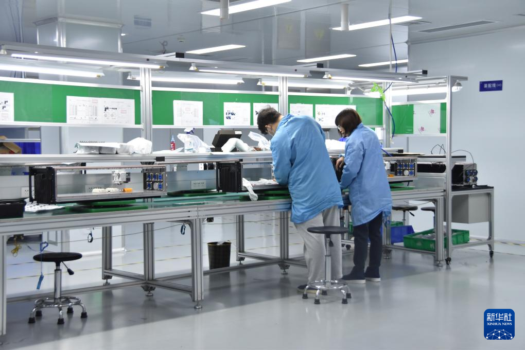 湖南凌翔磁浮科技有限公司工人在電氣車間進行裝配作業(12月19日攝)。新華社記者 白田田 攝