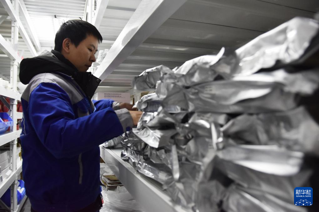 湖南凌翔磁浮科技有限公司倉庫管理員在清點產品(12月19日攝)。新華社記者 白田田 攝