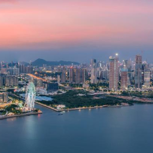 晚霞映照下的深圳前海一景(2024年7月23日攝,無人機全景照片)。新華社發(童艷龍 攝)