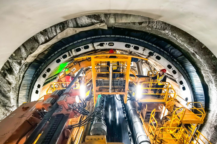 這是2025年1月5日拍攝的引江補漢工程首臺雙護盾硬巖掘進機“江漢平安號”掘進施工現場。新華社記者 肖藝九 攝