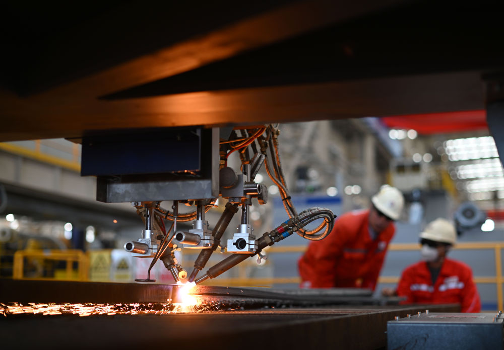 工作人員在海油工程天津智能制造基地制管作業車間調試數控切板機(2024年10月30日攝)。 新華社記者 趙子碩 攝