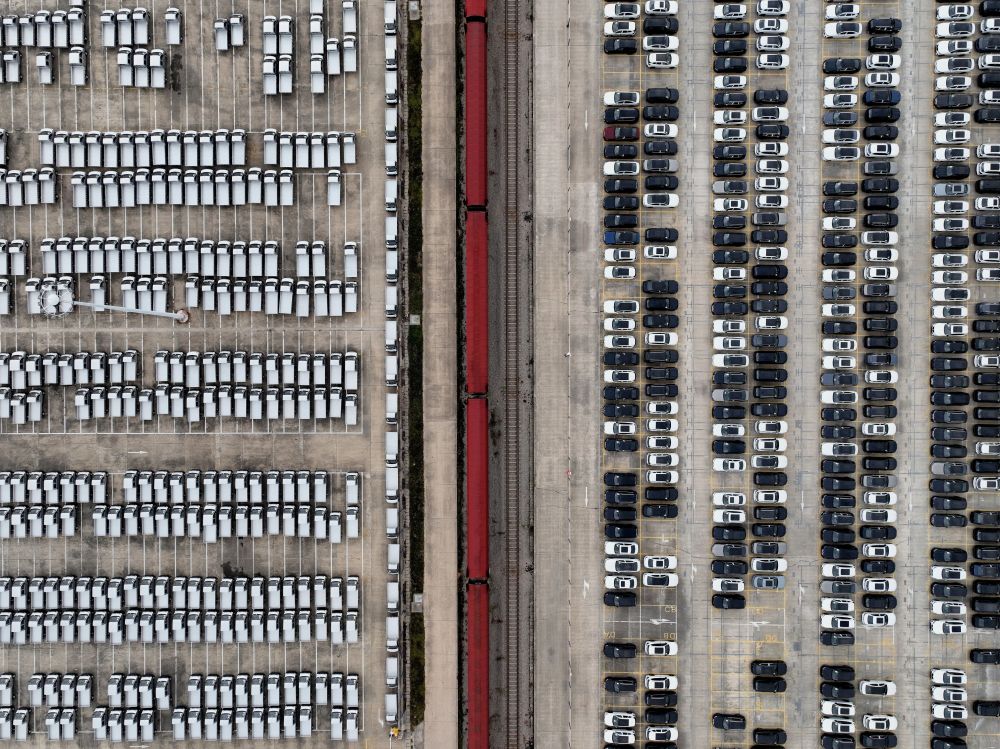 這是在中鐵聯集武漢中心站拍攝的整裝待發的汽車(2024年11月16日攝,無人機照片)。新華社記者 邢廣利 攝
