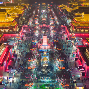 游客在西安大唐不夜城游玩(2024年2月2日攝,無人機照片)。 新華社記者 邵瑞 攝