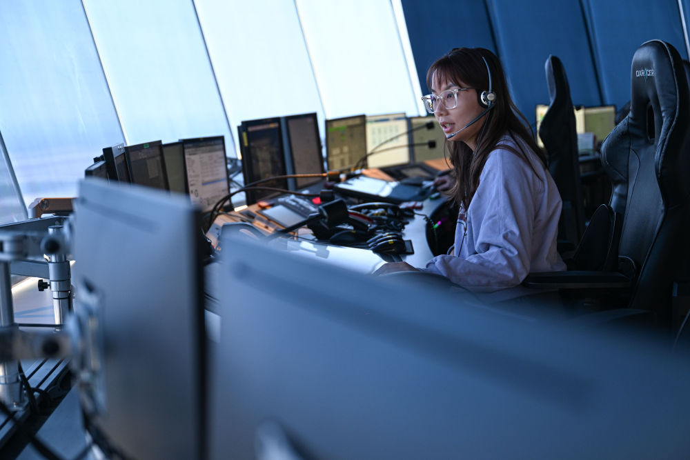 2025年1月19日,在??诿捞m國際機場塔臺,民航海南空管分局塔臺管制員指揮民航客機在該機場起降。新華社記者 蒲曉旭 攝