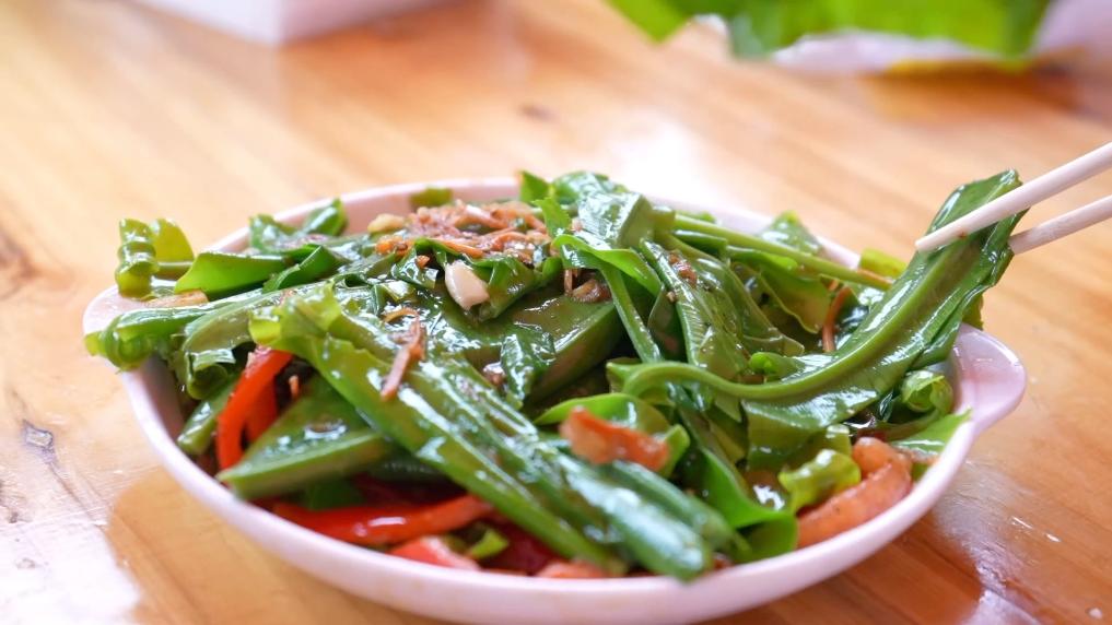 鳥巢蕨,因葉片形同綠如意,海南部分地區老百姓將其稱作“如意菜”。